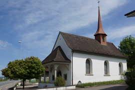 Die Eligiuskapelle ist ein schlichter, frühbarocker Bau aus dem Jahr 1647. Sie wurde 1654 geweiht durch den Propst des Stiftes St. Leodegar in Luzern Jost Knab. Dieser war damals zugleich Bischof von Lausanne; sein Wappen prangt am Hausaltar über der Marienstatue.